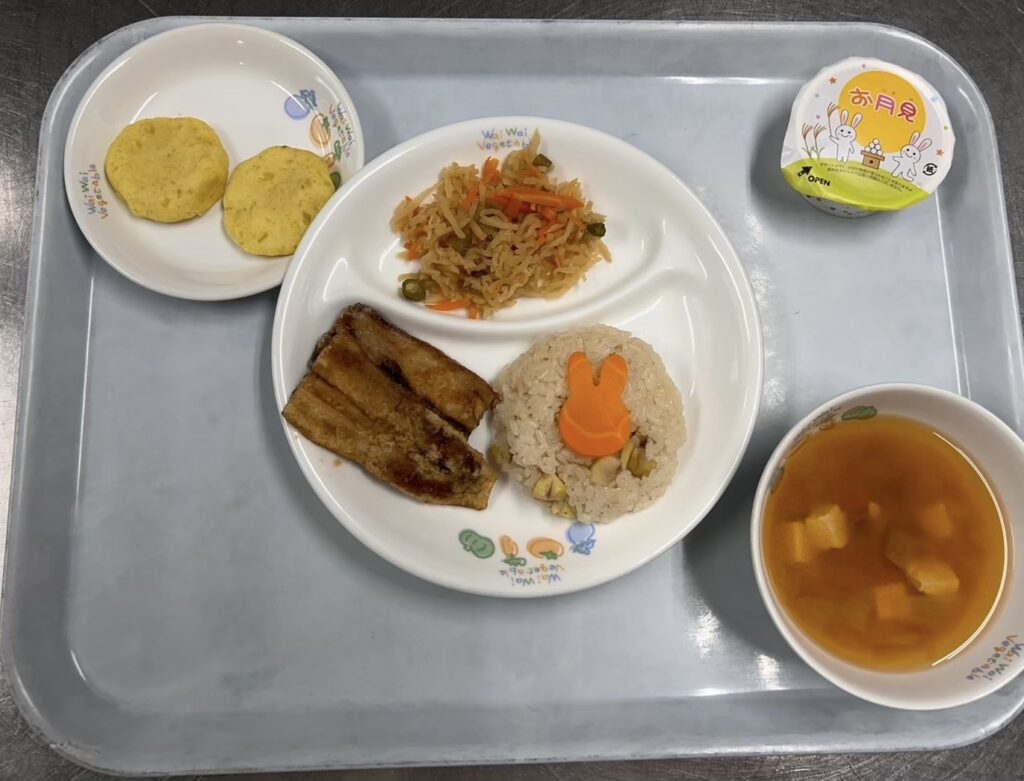 旬の食材を取り入れたメニューに「今日はお月見給食だね♪」と