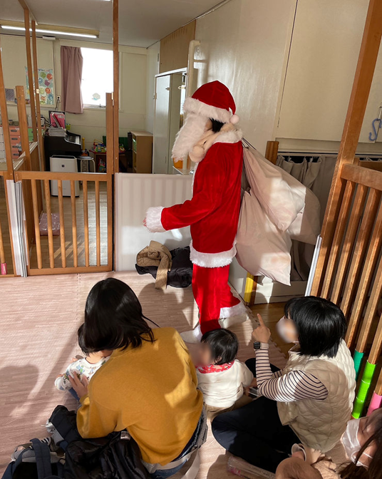 シャンシャンシャンと聞こえる鈴の音に耳を澄ませると...サンタさん登場!涙たっぷりのお友だちや緊張で固まってしまうお友だちもいましたが、たんぽぽ組のお友だちは「サンタさん!」と大喜びでした。涙していたお友だちもみんな一人ずつしっかりとプレゼントを受け取り、嬉しそうでした!「また来てね!」と笑顔でサンタさんをお見送りしました。サンタさん、また来年も素敵なプレゼントと一緒に来てくださいね( *´艸`)