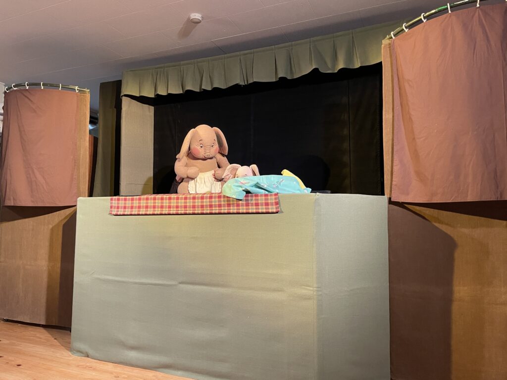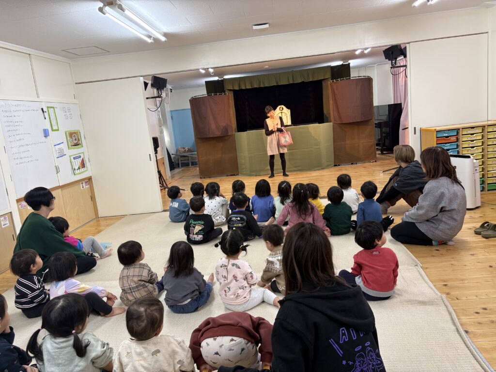 第1部は、1.2歳児が参加で、手遊びと人形ファンタジー『ぽんぽんぽえむ』を観ました。