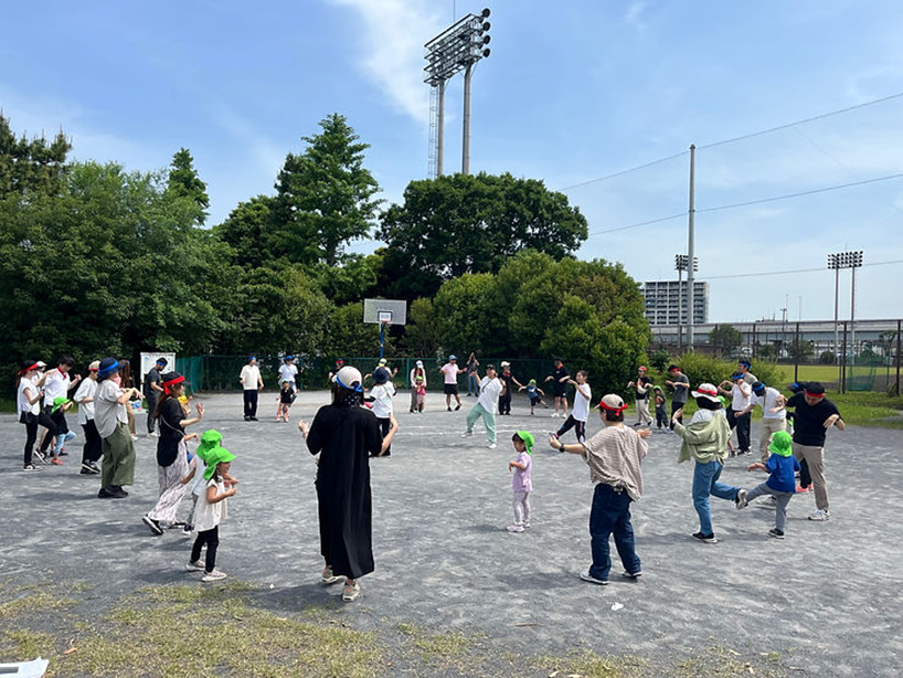 5月22日、きく組の親子ふれあいミニ運動会を枝川区民館のホールで行いました。 オープニングはチームカラーの法被とはちまきを身につけて、応援合戦を行い、子ども…