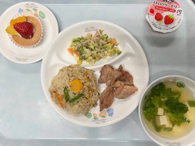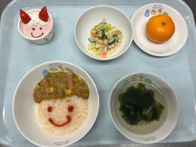 昨日が節分だったので、保育園でも節分メニューでした♪ 【給食】鬼さんドライカレー大豆入り野菜サラダわかめスープみかん 【おやつ】鬼さんイチゴムース 鬼さんイチゴ…