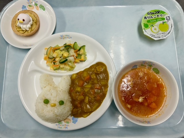 この日は、イースター給食でした。イースターのシンボルといえば、「たまご」「ひよこ」「うさぎ」です。なぜこれらがシンボルになっているかというと、たまごの殻を破って…
