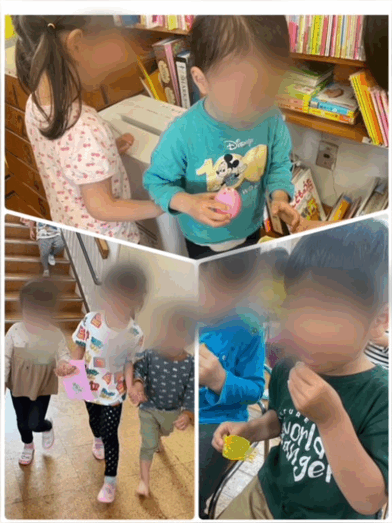 4月17日にイースターのお祝いをしました!【ちゅうりっぷ組】ちゅうりっぷ組は初めての幼児組になっての行事。合同礼拝や先生たちの劇を見た後は、イースターエッグ探し…