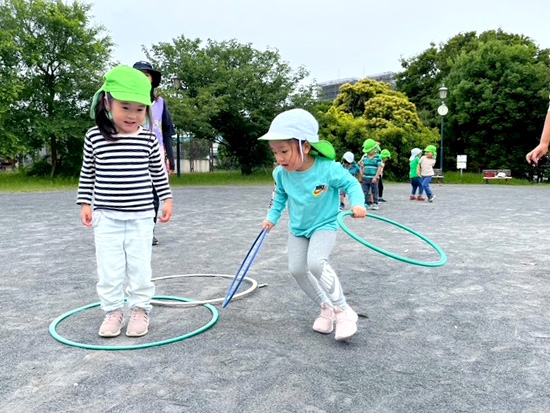『健康体操』とは・・・以前、保育園交流としての一環である私立保育園へ見学させていただいた時に『健康体操(子どもと健康を通して健康づくりを求める健康教育)』に感銘を受け、当園でも取り入れる事にしました。子ども達の健康な体づくりをサポートします!