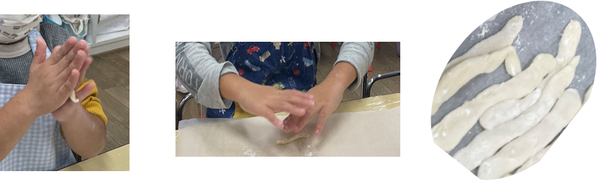 はじめは難しかっためんづくりも、「コツがわかった!」「長くできたよ!」「もっときれいにつくろう!」