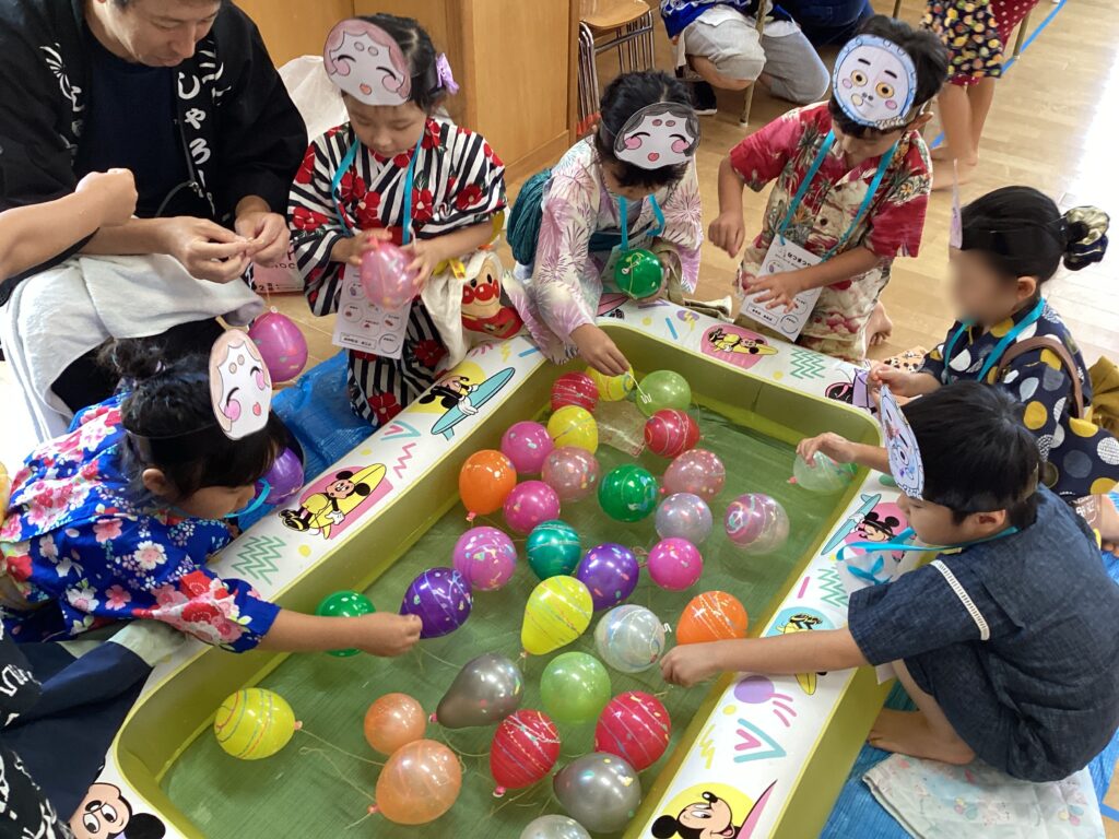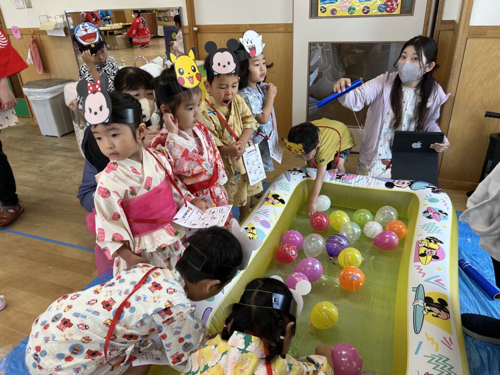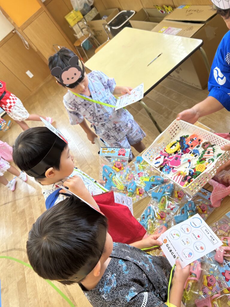 「景品は水鉄砲と手作りアイロンビーズでーす」